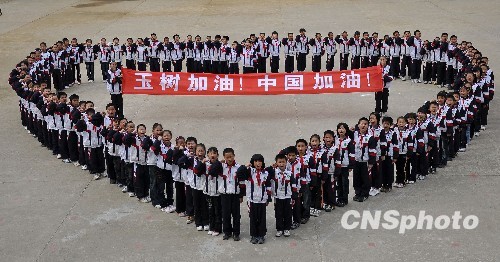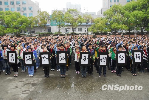 圖:浙江溫嶺學(xué)生哀悼玉樹地震遇難同胞
