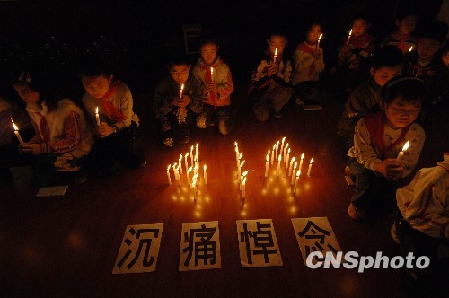 重慶小學(xué)生點燃蠟燭為玉樹遇難者默哀