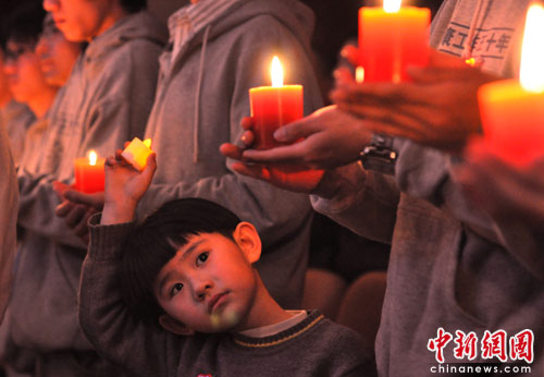 圖:首都大學(xué)生為地震災(zāi)區(qū)燭光祈福