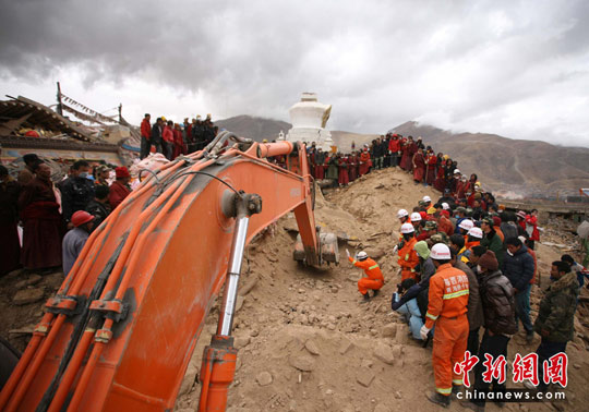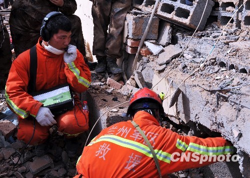 玉樹(shù)震區(qū)救援隊(duì)爭(zhēng)分奪秒搶救生命