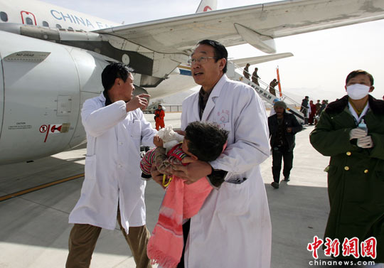 玉樹(shù)地震災(zāi)區(qū)14名藏族重傷員轉(zhuǎn)移至西寧