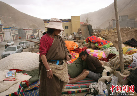 震后玉樹(shù)居民將起居用品搬到戶外