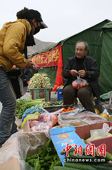 青海玉樹(shù)地震:帳篷村里的蔬菜店