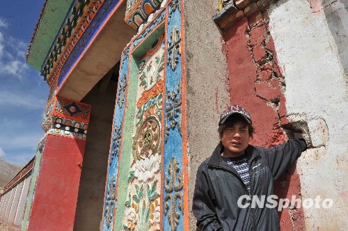 圖:玉樹(shù)震中點(diǎn)日查榮寺寺門兩邊出現(xiàn)裂縫