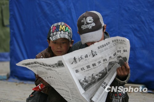 震后玉樹(shù):街頭看報(bào)紙的少年