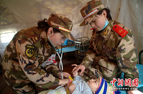 武警青?傟(duì)醫(yī)院視災(zāi)區(qū)兒女為自己的親人