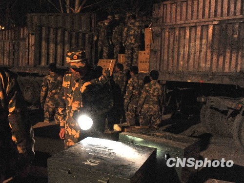 圖:武警青海省總隊(duì)星夜向玉樹(shù)運(yùn)輸大批物資