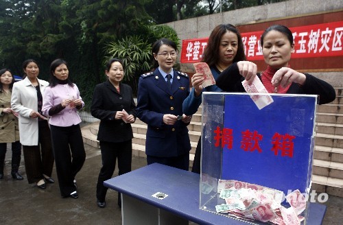 四川華鎣:市民踴躍為玉樹(shù)災(zāi)區(qū)捐款獻(xiàn)愛(ài)心