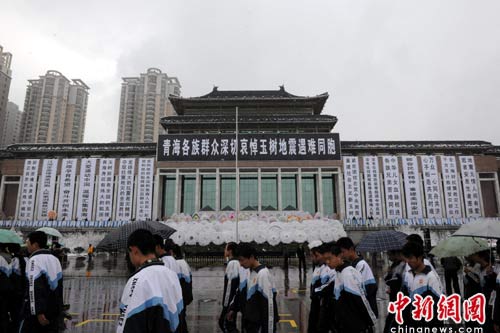 圖:西寧各界民眾冒雪悼念玉樹(shù)地震遇難同胞