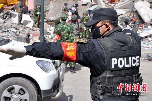 圖:成都特警在玉樹(shù)地震災(zāi)區(qū)街頭巡邏