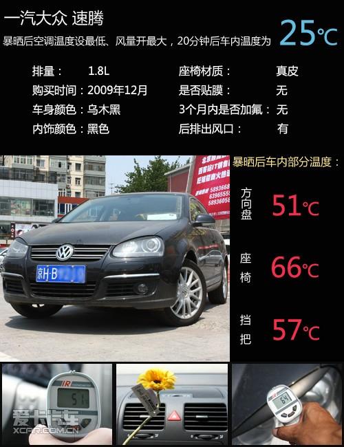 驕陽下黑內黑外的速騰冠軍看著就給人一種燥熱感,車表溫度飚到了60度以上,車內皮膚觸及點燙得難以觸碰,還好空調比較爭氣,讓車內溫度下降很快,當然后排出風口也是功不可沒的。