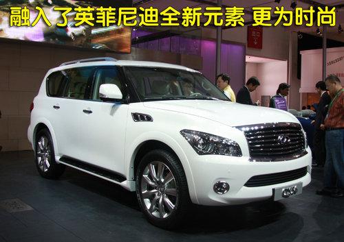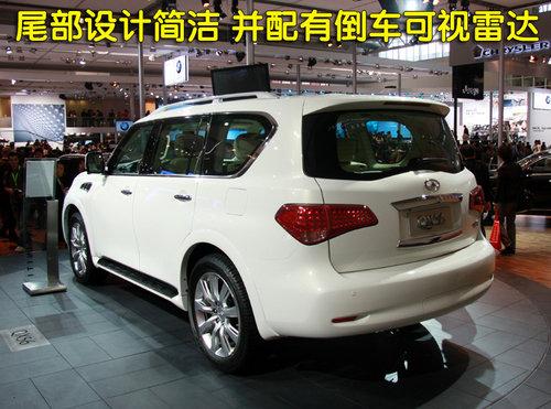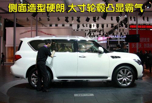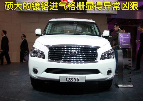 近年來SUV車型持續(xù)火爆,各廠商陸續(xù)推出新的車型以增加市場競爭力。同時性能強悍,寬大舒適的大型SUV,也得到了一些具有獨特品位喜歡運動且資金富裕消費者的最愛,因此大型豪華SUV市場也受到了不少消費者的關(guān)注。英菲尼迪是日系高端品牌中最具有藝術(shù)氣息的,今年在北京車展上就展出了全新一代的QX56,QX56作為一款7座豪華SUV車型,一經(jīng)推出就立刻受到了的中國消費者的關(guān)注。近日我們從英菲尼迪4S店銷售人員處獲悉到,全新的英菲尼迪QX56將于今年9月份到店,預(yù)計售價160萬元左右。銷售人員還表示,目前各4S店均已開始接受預(yù)定,訂金10萬,第一批車主將于10月份提到現(xiàn)車。下面就讓我們回顧一下,在2010北京車展上見到的英菲尼迪QX56。