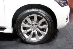 來到車身側(cè)面我們更加會覺得QX56的龐大,整體造型圓潤,沒有多余的線條作為修飾,但是反而會讓人感到車身很厚實。無鑰匙進入也毫無懸念的裝配在了QX56身上,兩側(cè)翼子板上的散熱孔并非形同虛設(shè),而是告訴我們它裝載了一臺V8 5.6升汽油發(fā)動機。其次英菲尼迪慣用的大尺寸輪轂同樣被裝到了這款新車上,22寸9幅造型的鋁合金輪轂使我不得不說很有氣勢,與之搭配的是普利司通275\50 R22輪胎,抓地力應(yīng)該相當(dāng)不錯。