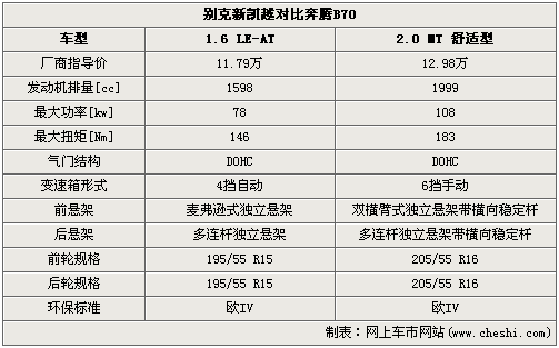 別克取消了新凱越的1.8L版車型,1.6L發(fā)動機足以對應(yīng)您日常的車輛使用需求;搭載2.0升發(fā)動機的奔騰B70在動力方面表現(xiàn)比較出色,配合追求駕駛樂趣的6檔位手動變速箱,操控的運動感覺非常好。新凱越后懸架采用多連桿獨立式,給予車輛較為溫柔的支撐力,擁有很好舒適度;奔騰B70采用帶有橫向穩(wěn)定桿多連桿獨立后懸架,對車身提供了更加堅強的支撐,過彎側(cè)傾比抑制效果好。