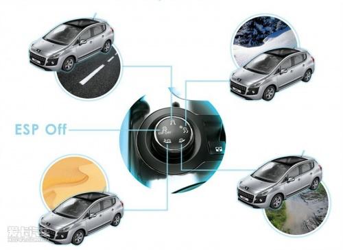 標(biāo)致3008還有一個值得一提的功能就是抓地力控制系統(tǒng);其由一個先進(jìn)的牽引力控制系統(tǒng)和特殊的泥/雪輪胎,通過自動調(diào)節(jié)前輪的牽引力輸出方式和功率來達(dá)到對應(yīng)的效率。標(biāo)致的這套系統(tǒng)通過人工來進(jìn)行切換,其一共有五個控制檔位:標(biāo)準(zhǔn)、雪地、越野(泥地、爛路、濕滑草地)、沙石地和關(guān)閉;通過調(diào)節(jié)不同的檔位來適應(yīng)不同的路面情況。