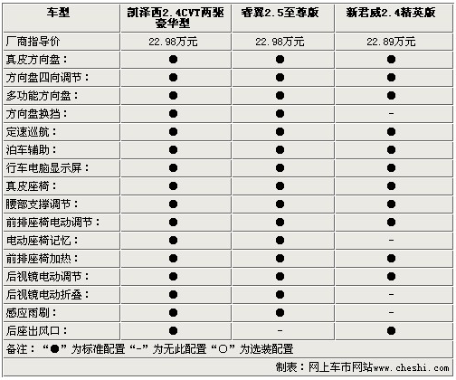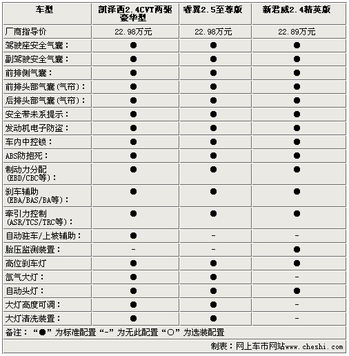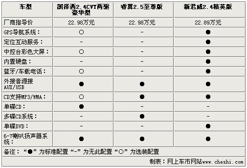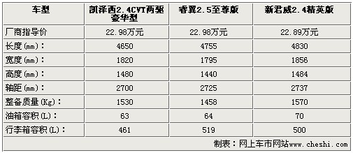 影音系統(tǒng)方面,三款車都為使用者提供了多揚(yáng)聲器的配置,除了AUX/USB接口外,凱澤西還配備了單碟CD,而睿翼則配備了更為便利的6碟CD系統(tǒng),新君威為單碟DVD。通過以上參數(shù)配置方面的比較,對于三款22.98萬左右的中級車,配置方面基本打成平手,僅在一些細(xì)節(jié)方面有所出入,不過動力方面凱澤西確是實(shí)實(shí)在在的戰(zhàn)勝了睿翼和新君威,幾乎將2.4L引擎的動力發(fā)揮到了極致。