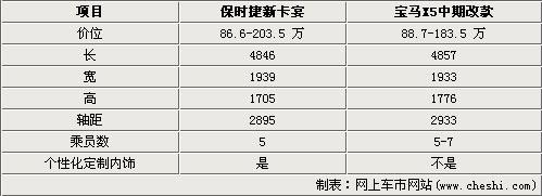 保時(shí)捷新卡宴是保時(shí)捷推出的換代車型,在外形的改變、內(nèi)飾的改變還有動(dòng)力系統(tǒng)的改變上都非常的多。而B(niǎo)MW X5屬于第二代X5的中期改款車型,因此在外形的改變上并不十分明顯,依然保留了很多第二代X5的經(jīng)典元素。