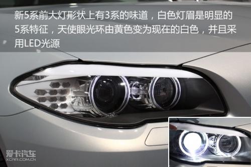 前大燈從外形上看有點(diǎn)類似于現(xiàn)款3系的設(shè)計(jì),但很明顯的5系風(fēng)格是擁有白色的燈眉設(shè)計(jì),據(jù)寶馬官方介紹,這樣的設(shè)計(jì)將使得前大燈給人一種注視前方的感覺,更加有神。而與上代5系相比非常明顯的變化是天使眼大燈由此前的黃色變?yōu)榘咨訒r(shí)尚和富有科技感,并且天使眼的發(fā)光源采用了LED燈組設(shè)計(jì)。