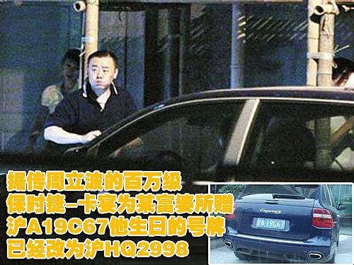 周立波目前的座駕是一輛價(jià)值百萬的藍(lán)色保時(shí)捷新卡宴SUV,上海的觀眾以及媒體早已經(jīng)對這輛座駕非常熟悉。但是在這輛座駕的背后還有著一段故事。其前妻張潔曾經(jīng)對媒體表示,該車系溫州富婆所贈,因此自從“博客門”后,周立波就再也沒有開卡宴到戲院演出。