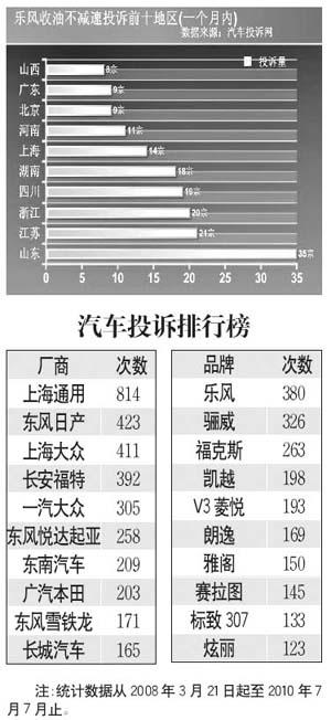 值得一提的是,此次投訴覆蓋了全國21個省市自治區(qū),占了國內絕大部分地區(qū),因此,本次樂風發(fā)動機收油不降速投訴,除投訴量增長迅猛外,涉及的面廣也是其中的一大特色。