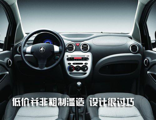 奔奔mini的中控臺設(shè)計與前兩款車型有所不同,與前者相比面積利用率更大,各部件的擺放位置也更合理耐看。中控臺面板為一微微凸出平面,輔以銀色涂裝,具有上佳的人機(jī)工程學(xué)設(shè)計;空調(diào)出風(fēng)口是四個可完全關(guān)閉的原型狀;副駕駛前方手套箱由抽屜式變成開放式;門壁板手枕加寬,更便于使用。