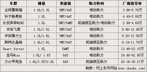 能吸引注意力,外觀之最直觀的一點,也是九款車型最大的一個共同優(yōu)勢所在。若要說它們“虛有其表”,也不能這么簡單的妄作斷言。擁有足夠的動力是小車能在都市里穿梭的前提,很顯然沒有低于1.0L的排量基本上可以保證這一點。轉(zhuǎn)向助力可以是操控更輕巧,三個階層的價位可以滿足不同經(jīng)濟(jì)實力人群的購買需要。美麗的女孩,開一輛可愛的小車,游蕩在高樓林立中,好不愜意。
