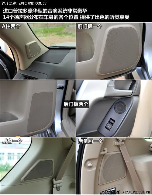 除了6碟DVD播放系統(tǒng)外,普拉多還加入了年輕人非常喜歡的AUX和USB接口,這也是普拉多年輕化的一個方面吧。強大的音響系統(tǒng)是普拉多的一大看點,全車從前到后共配置了14個揚聲器,提供了出色的視聽享受。