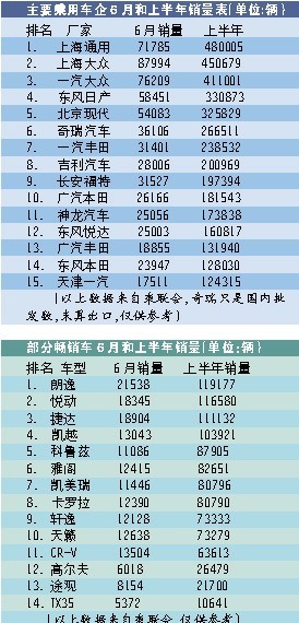 乘聯(lián)會(huì)最新統(tǒng)計(jì)顯示,上半年廣義乘用車國(guó)內(nèi)銷售累計(jì)達(dá)631萬輛,廣義乘用車批發(fā)銷量累計(jì)達(dá)672萬輛。上海通用以半年銷售48萬輛超越2008年全年的成績(jī),奪得了半程冠軍,但在6月,上海通用7.18萬輛的銷量低于上海大眾的8.8萬輛。