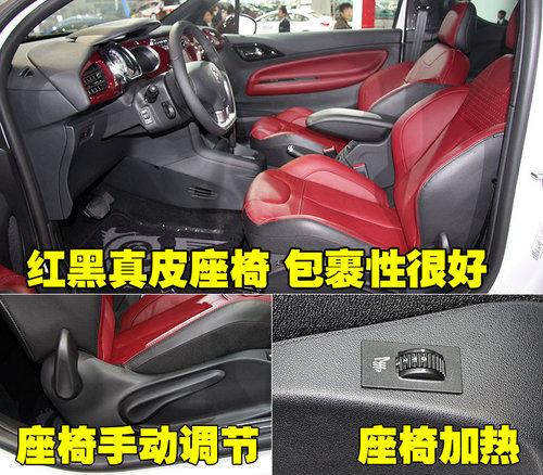 雪鐵龍DS3整車座椅均采用紅黑真皮材料,駕駛席座椅前后、靠背角度、座椅高度為手動(dòng)調(diào)節(jié)。各拉手四周做工較細(xì)致,沒(méi)有感覺(jué)到松垮的感覺(jué)。