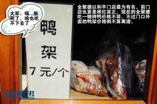 前門大街最著名的老北京小吃,應(yīng)該就要算是“全聚德”了,對于這家中華著名老字號,大家早已聞名已久。不過考慮到自己肚子的承受能力,最后還是放棄了在全聚德大吃一頓的打算?谒鄣率讋(chuàng)的掛爐烤鴨已久的瘦劉有些怏怏,不過這點遺憾很快就被“都一處”燒麥的誘惑打消的無影無蹤了。