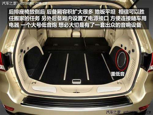 座椅放倒后空間后備廂空間得到很大擴大,放倒后地板平整,我想可以勝任搬家的任務(wù),如果用作旅行,后備廂容積足以放下你所需的物品,不是還有車頂行李架呢嘛?后備廂還這是了一個電源接口,方便隨車用電器連接使用。另外在后備廂內(nèi)發(fā)現(xiàn)了一個尺寸不小的低音炮,相信新款大切可以給我們帶來不錯的視聽感受。