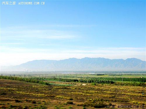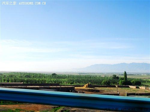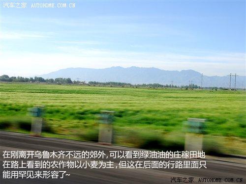 離開高區(qū)駛?cè)雵溃嚧巴獬霈F(xiàn)了不同尋常的景色。景物也隨著我們的前進在不斷地變化。在剛離開烏魯木齊不遠(yuǎn)的郊外,可以看到綠油油的莊稼田地,一片片的小麥田地讓人目不睱接。