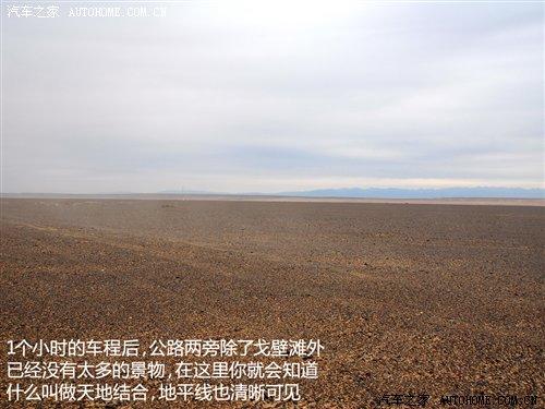 1個小時的車程后,公路兩旁不再是那土房子和綠綠的田地了,取而代之的是戈壁灘。此時公路兩旁也沒有了太多的景物,遠(yuǎn)處看到的是清晰的地平線,什么叫做天地結(jié)合或許此時你會深有體會。