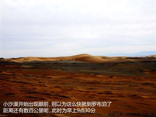 不知不覺我們已經(jīng)行駛了3個小時了,此時已經(jīng)是早上的9點(diǎn)30分了,小沙漠開始出現(xiàn)在路旁,但這只是一個開始,距離我們的目的地羅布泊還有數(shù)百公里的距離呢。經(jīng)過小休的我們突然間都打起了精神,因?yàn)檠诺さ孛惨呀?jīng)出現(xiàn)了...