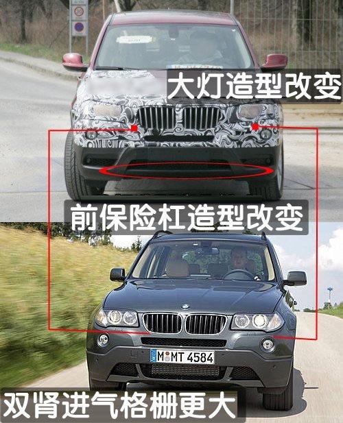 與目前的車型相比,這款 X3車型的尺寸幾乎沒有發(fā)生什么變化,其車型風(fēng)格體現(xiàn)了CS概念車上的一些元素。整體車身外觀沒有發(fā)生什么變化,但這款新車型預(yù)期將采用更為突出的散熱格柵及新的前車燈設(shè)計。除了車身外觀上的一系列改進外,新車型還將采用一系列新配置,以此來迎戰(zhàn)來自奧迪與奔馳的競爭。新車型配置了寶馬X6車型上的夜間平視顯示器,其雙氙氣前車燈還具有環(huán)景照明功能。