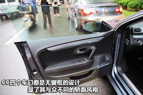 一汽-大眾CC的四只車門都是無窗框的設計,這樣的設計風格在國內(nèi)的大多數(shù)車型中都很少見,這一點也是彰顯了其與眾不同的轎跑風格。在車門內(nèi)部的積鍍鉻件和真皮面料的應用讓人很容易聯(lián)想到一些豪華車的設計元素,也有幾分復古的感覺。