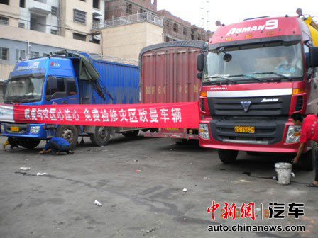 中新網(wǎng)7月19日電 2010年中國自然災(zāi)害不斷,入汛以來,西南地區(qū)持續(xù)出現(xiàn)強降雨量導(dǎo)致浙江、福建、江西、廣東、廣西等地區(qū)重復(fù)受災(zāi)。在江西、福建等受災(zāi)較為嚴(yán)重的地區(qū),一輛輛身著鉆石車標(biāo)的歐曼重卡在這里奔忙,他們不僅為災(zāi)區(qū)人民送來了緊缺食品如大米、飲用水、棉衣棉被、沖鋒舟等價值50多萬元的物資。同時還向災(zāi)區(qū)所有歐曼車主提供免費車檢和配件供給服務(wù),確保所有救災(zāi)車輛工作正常,行駛正常,支援災(zāi)區(qū)受災(zāi)物資安全轉(zhuǎn)移和災(zāi)后重建工作的輜重運輸。