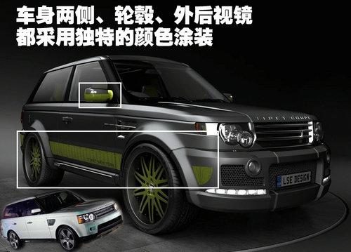 當然,路虎攬勝運動版改裝車的外形與普通路虎攬勝運動版也有很大不同,首先映入眼簾的是車身獨特的顏色涂裝,外后視鏡、車身兩側的裙邊以及輪轂都顯得個性非凡。另外,我們還可以發(fā)現這款車的輪轂采用了全新的造型,采用十條幅式設計,也采用了超扁平比輪胎,彰顯運動氣息。