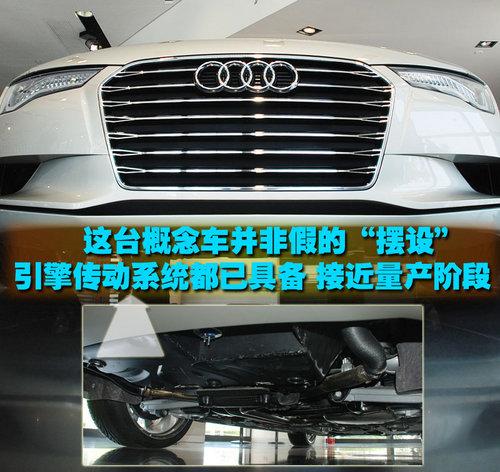 通常來展示在站臺上的概念車大都只是一個空殼子而已,出于好奇心我也趴到車底一看究竟。事實上這臺概念車已經被裝上了動力系統(tǒng)和懸架系統(tǒng),加滿油、啟動引擎就可以開動?上У氖乾F在它只能乖乖的趴在展廳里。動力系統(tǒng)上歐洲市場會搭載與全新A8或是Q7相同的柴油引擎以及汽油引擎。