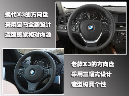 內(nèi)飾的風(fēng)格,老款X3經(jīng)過(guò)將近4年的歲月,設(shè)計(jì)風(fēng)格顯然有點(diǎn)趕不上潮流,大面積顏色裝飾感覺(jué)缺乏質(zhì)感,中控臺(tái)的設(shè)計(jì)也比較有復(fù)古。換代X3的內(nèi)飾采用了寶馬全新的設(shè)計(jì)感覺(jué),簡(jiǎn)單的中控臺(tái)設(shè)計(jì)很直觀,桃木材質(zhì)的使用更加突出了內(nèi)飾的高品質(zhì)。
