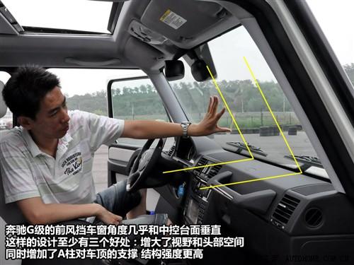 奔馳G級(jí)的車窗按鍵放置的位置比較特殊,不是像一般車型那樣放在車門扶手上,而是放置在車門最頂端的水平面上。這樣的設(shè)計(jì)顯然使用起來(lái)不夠方便,但它的目的我們猜想應(yīng)該是出自涉水的考慮,較高的位置不會(huì)輕易被水淹沒,也就不會(huì)因進(jìn)水而失靈。