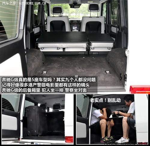 除了能載物外,奔馳G級后備廂兩邊的凸起正好可以坐下每邊兩個(gè)人,不過這樣上路可是法律所不允許的,所以像上圖那樣警察押送犯人的情景還是僅限于靜態(tài)比較好。而當(dāng)掀起整個(gè)后排座椅后,寬大的后備廂足以運(yùn)載冰箱或洗衣機(jī)這類的大件物品,出色的垂直空間也使物品的高度不再受太多的限制。