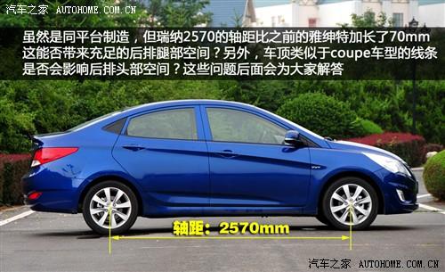 VERNA瑞納和雅紳特是同平臺產(chǎn)品,但是在車身尺寸上已經(jīng)全面超越,首先軸距就增加了70mm,并且車身長度增加20毫米,車身寬度增加5毫米,而限于整體流線的造型,高度則降低20毫米。樣的尺寸和同級別對手相比優(yōu)勢不是太明顯,不過軸距卻的確有些優(yōu)勢,這樣就讓我們對后排空間的改善有了期待,當然也擔心頭部空間是否會受到影響,而這些問題我們隨后都會一一解答。