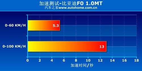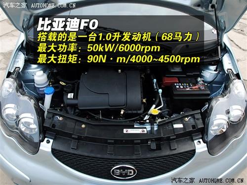 比亞迪F0搭載的是排量為1.0L的3缸全鋁發(fā)動(dòng)機(jī),最大功率為68馬力,最大扭矩90牛米,在國內(nèi)同級(jí)別的車型中,它的動(dòng)力性是比較出色的,0-100Km/h加速只用了13秒,在微型車中算是比較不錯(cuò)的成績了,但表現(xiàn)不佳的剎車成績讓人缺乏安全感。關(guān)于它詳細(xì)的測(cè)試,可以參考下面的文章: