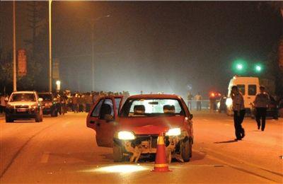 目擊者稱,晚10點20分左右,一輛從南半壁店小區(qū)路駛出的紅色夏利,右拐開上李天路后,迅速將車頭擺正并直對人群。夏利車倒退五六米后,司機突然猛踩油門沖向人群,一名女子直接被撞飛,接著夏利扎進(jìn)人群,接連撞倒十余名堵路居民,人群中不斷傳出尖叫聲。夏利車碾軋駱老太,在人群中沖出幾十米后,被群眾和民警阻攔,肇事司機被當(dāng)場控制。