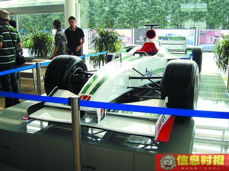 一輛采用主要用于制作飛機(jī)、導(dǎo)彈的碳纖維材料制作,價(jià)值2億人民幣的本田環(huán)保型F1賽車(chē),7月24日將在錦漢展覽中心“第六屆廣州購(gòu)車(chē)節(jié)”中展出供市民參觀。據(jù)悉,這輛天價(jià)賽車(chē)目前國(guó)內(nèi)僅此一輛。