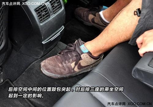 雖然座椅柔軟舒適,空間寬大,座椅中央也有頭枕,但是對于后排是三座的空間來說,中間的鼓包一定程度上的影響了乘坐的空間,坐上三個成年人還是有些勉為其難的。