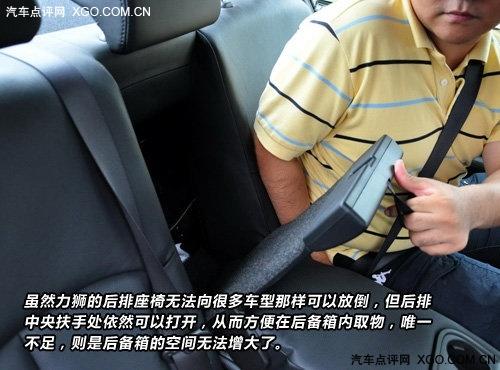 當(dāng)然如果排除后排的第三個人,一個人或者兩個人坐在后面,還是很舒適的,后排的中央扶手不僅寬大,而且高度適中,水平放置后,位于杯架后的部分真皮包裹,十分柔軟,肘部放在上面的角度也合適,即使杯架內(nèi)放置了水瓶,乘客的胳膊也不會受到絲毫影響。更不會出現(xiàn)乘客為了胳膊支撐在扶手上而采取一個很不舒服的坐姿的情況。力獅的后排座椅無法放倒,卻可以從中央扶手的靠背處打開,方便從后備箱內(nèi)取物。
