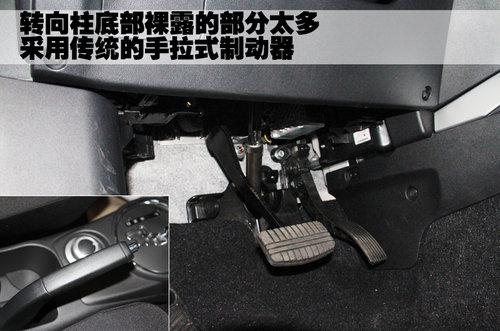 三菱ASX勁炫的轉(zhuǎn)向柱底部裸露的部分太多,沒有周密的防護板保護措施,剎車和油門踏板采用橡膠材質(zhì)包裹,起到防滑的作用。這款新車采用傳統(tǒng)的手拉式制動器,更高端的電子式手剎并沒有出現(xiàn)在這款車上。