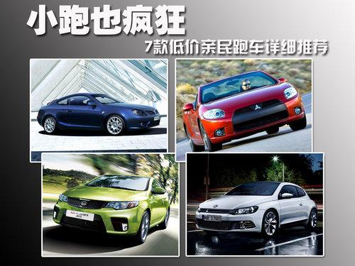 能擁有一輛屬于自己的超級跑車,一直是所有愛好速度的車迷們最終的夢想。想象一下,慵懶的周末下午,自己開著名車大廠的頂級座駕,招搖的見過城市的條條街道,必定會引來無數(shù)羨慕的眼光。不過歸為現(xiàn)實,這些招人眼球的跑車價值昂貴的程度也跟他們的造型一樣,令人乍舌。這時,小跑的優(yōu)勢都凸現(xiàn)出來了,在能滿足您張揚(yáng)的個性和性能的基本要求的情況下,低廉的價格是它們的殺手锏。今天網(wǎng)上車市就為這一部分車迷帶來了福音,推薦給您8款親民跑車詳細(xì)推薦。